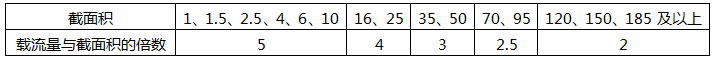 截面积为70mm2、95mm2的,载流量为截面积的2.5倍。